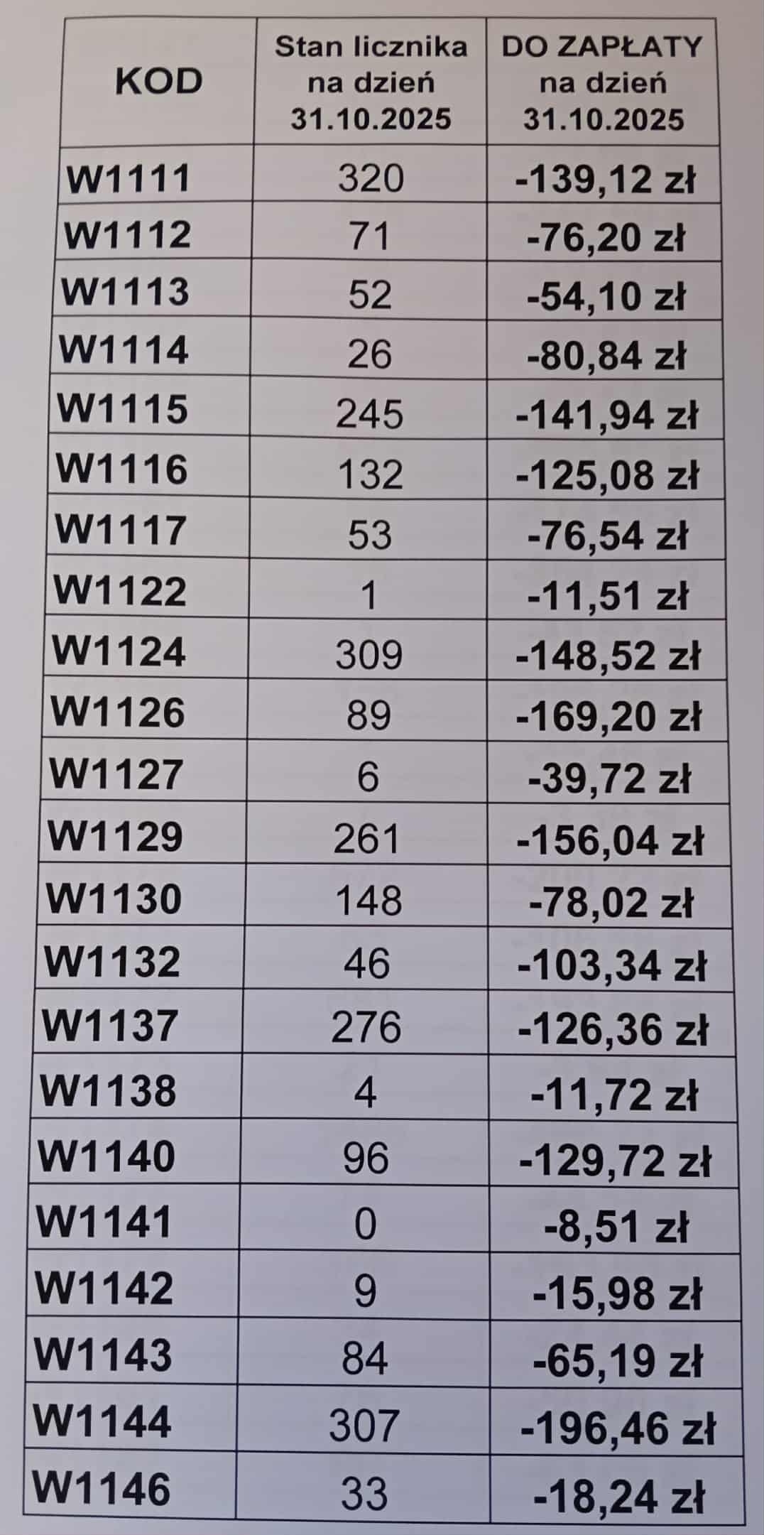 Rozliczenie prądu do 31.10.2025 r.